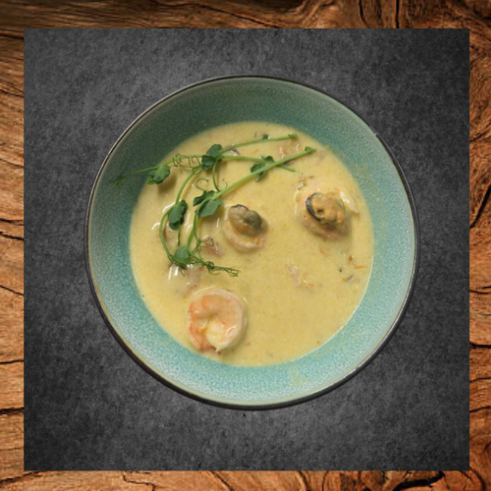 Вершковий суп з мідіями і креветками